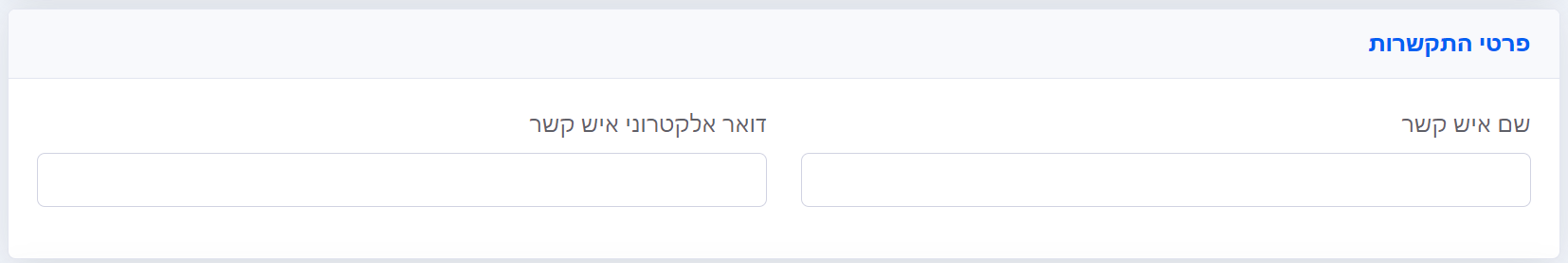 שם איש הקשר ודואר האלקטרוני של איש הקשר יופיעו באופן אוטומטי מפרטי איש הקשר המוגדר בחשבון.